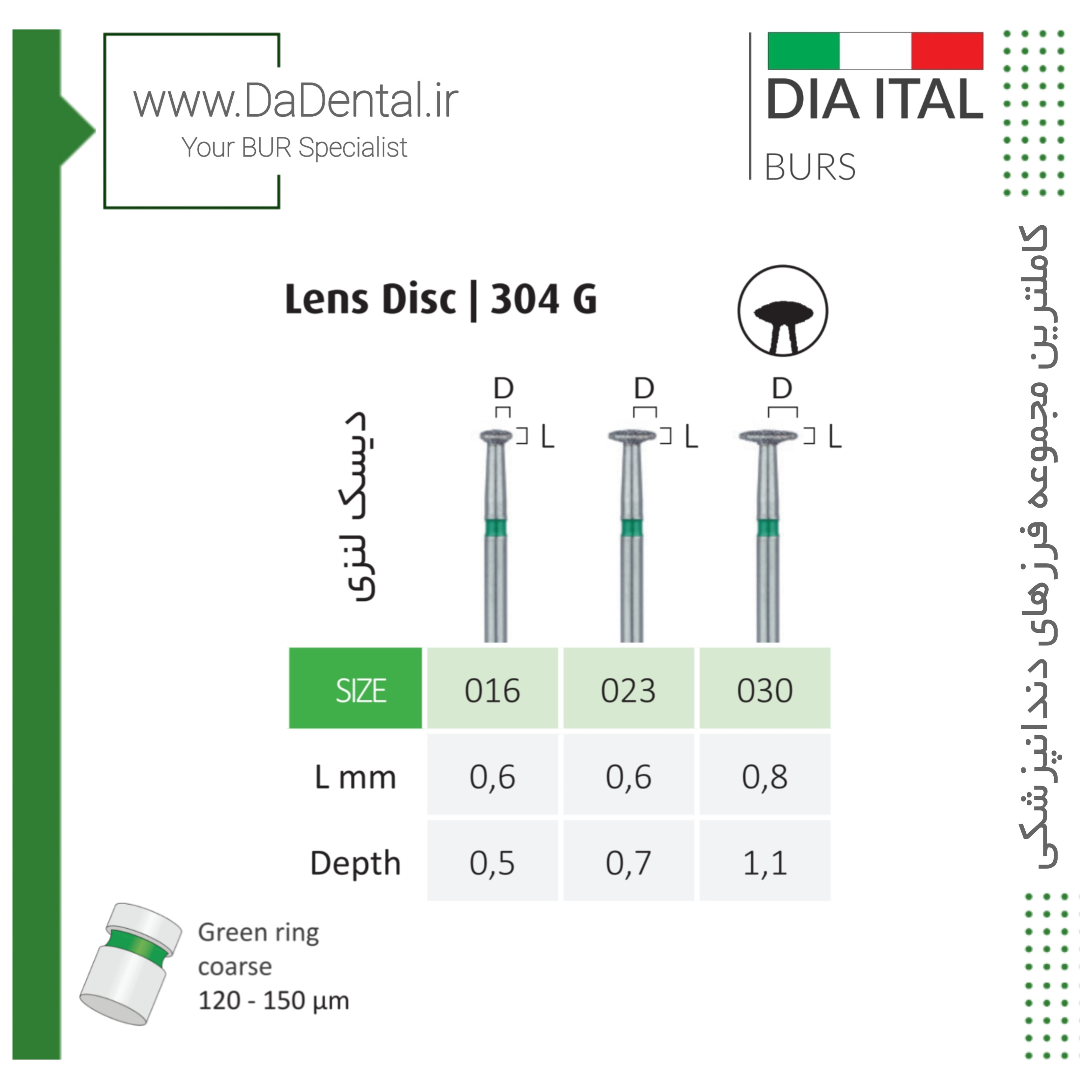 فرز عدسی الماسی دور سبز دیا ایتالی کد G304
