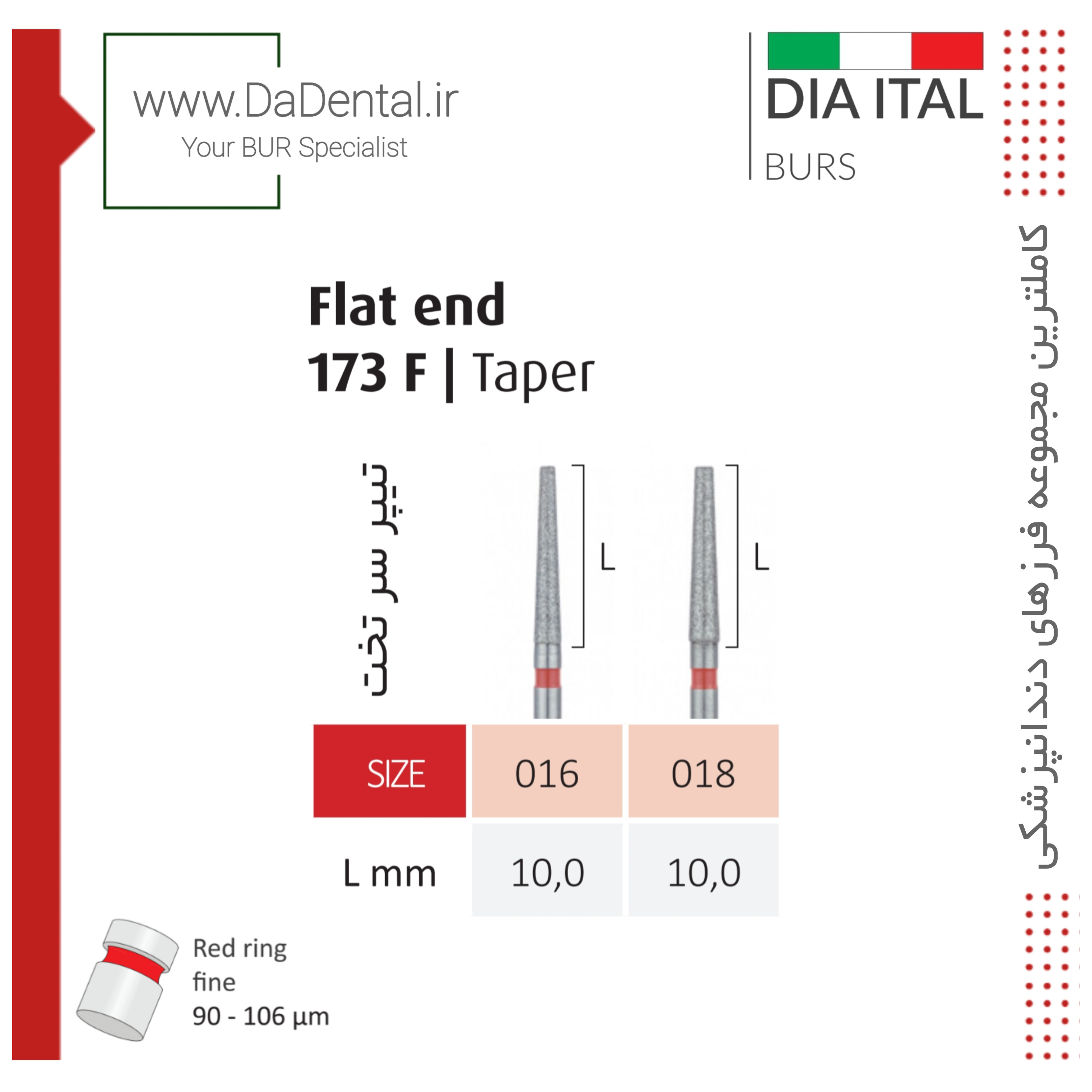 فرز تیپر فلت اند (شولدر) بلند الماسی دور قرمز دیا ایتالی کد F173