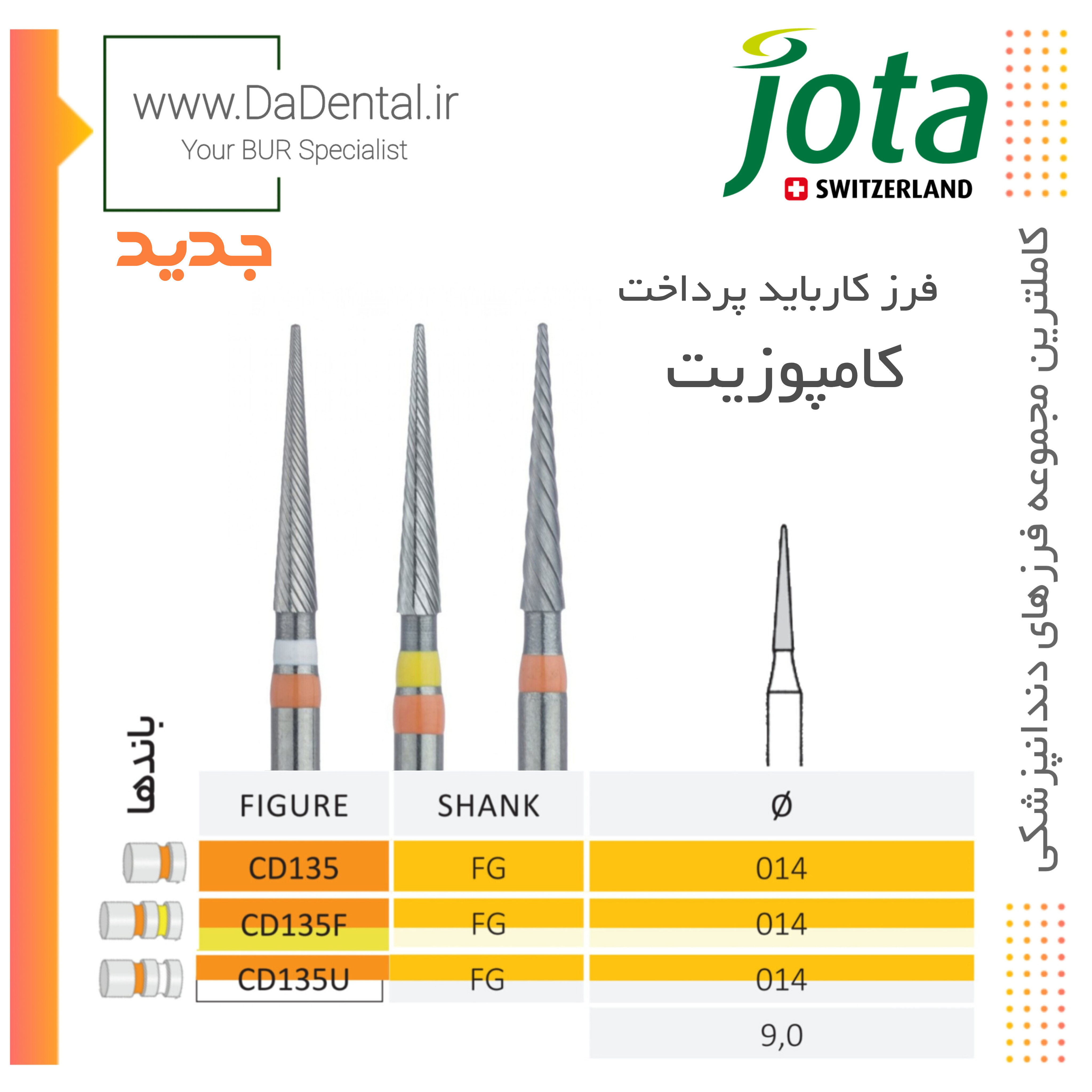 فرز کارباید نیدل بلند پرداخت کامپوزیت (سری جدید) مخصوص توربین جوتا jota کد CD135 FG